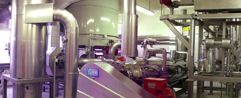 A implementação da Turbo Tecnologia VOMM permite conceber um processo inovador em que o cozimento é feito em uma massa de produto, mas em película fina em alta turbulência.